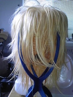 マリのヅラは手持ちのいらない金髪ロングを染めようと思って染め粉も買ってきて染めてみたら大失敗しました。